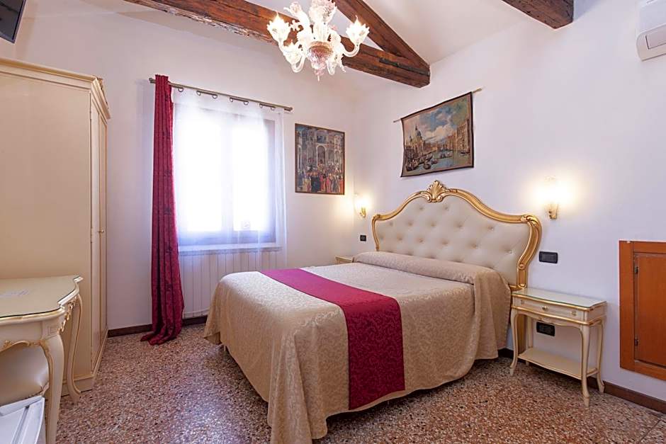Room with attached bathroom with Venetian-style furniture, air conditioning/heating, and a safe.